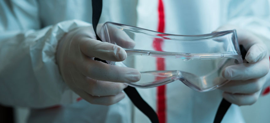 患者様からの感染防止のため、感染防止の道具をご準備しております。 医療用ガウン、医療用アイシールド、医療用ヘアキャップ、医療用ゴム手袋、医療用シューズキャップ、サージカルマスク、N95マスク